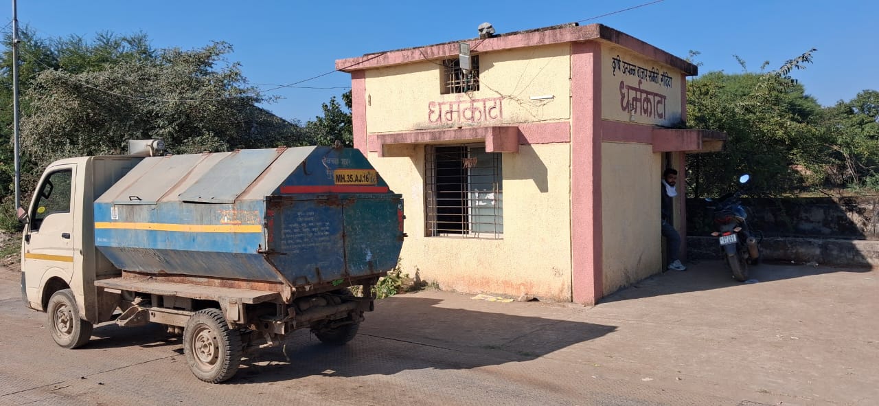 शेतक्-यांचे धानाला वजन करण्यासाठी धर्मकाटाची व्यवस्था