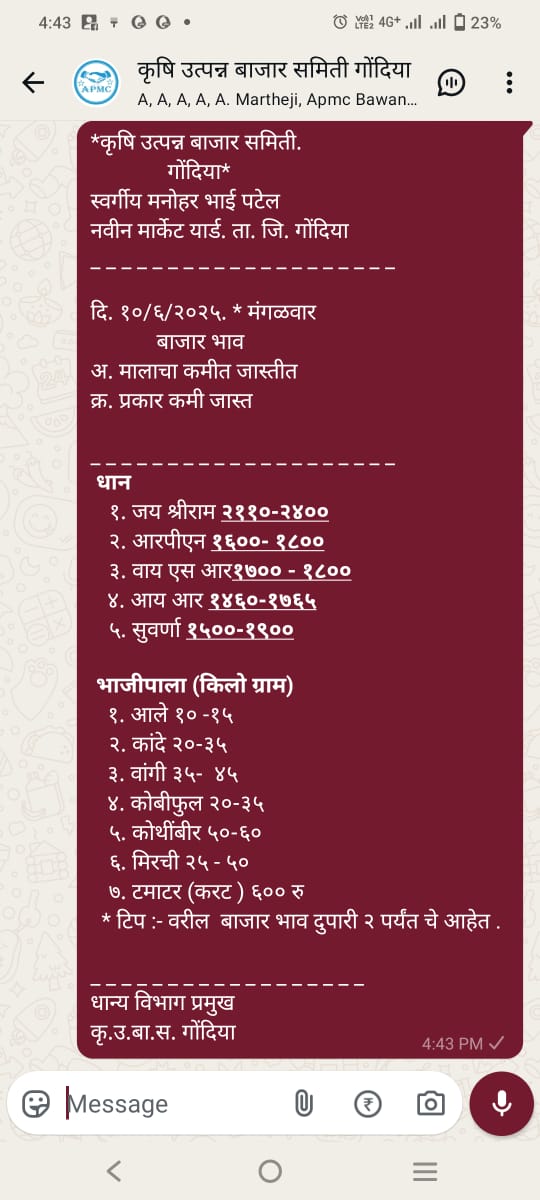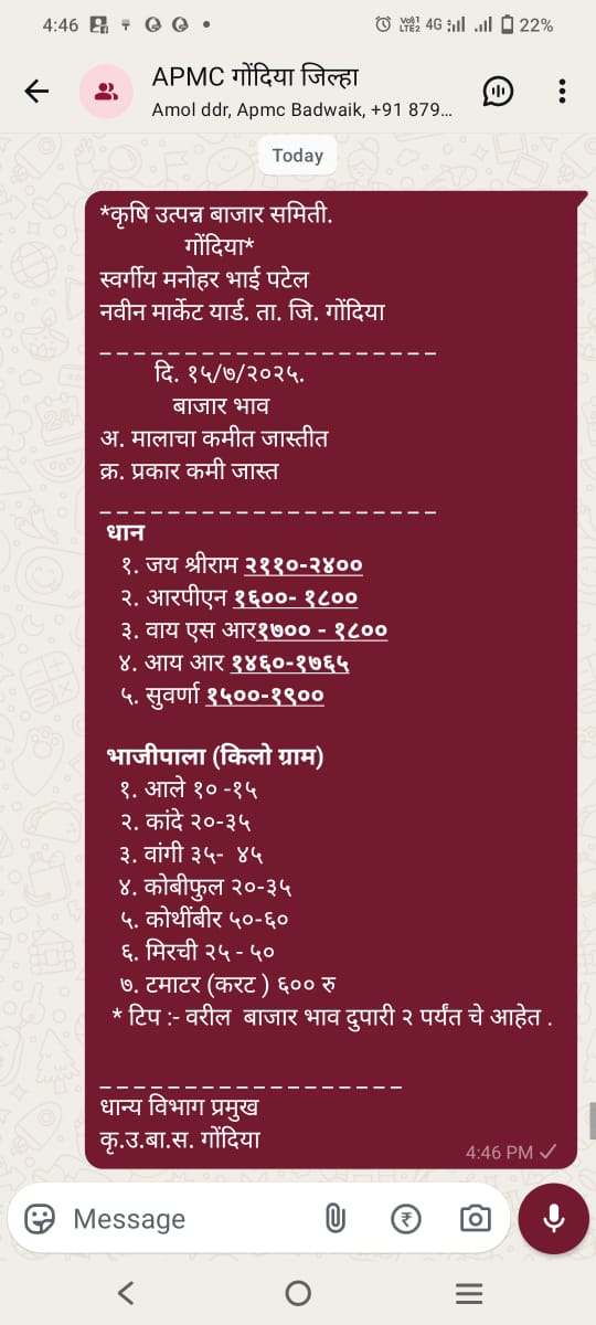 Market price information is provided through WhatsApp messages.
