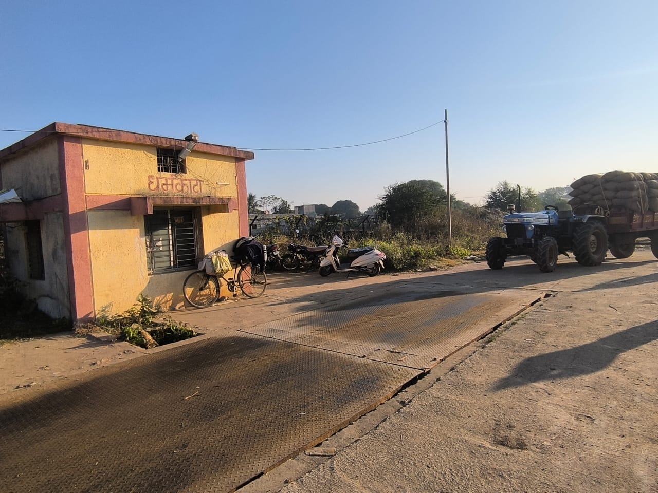 शेतक्-यांचे धानाला वजन करण्यासाठी धर्मकाटाची व्यवस्था